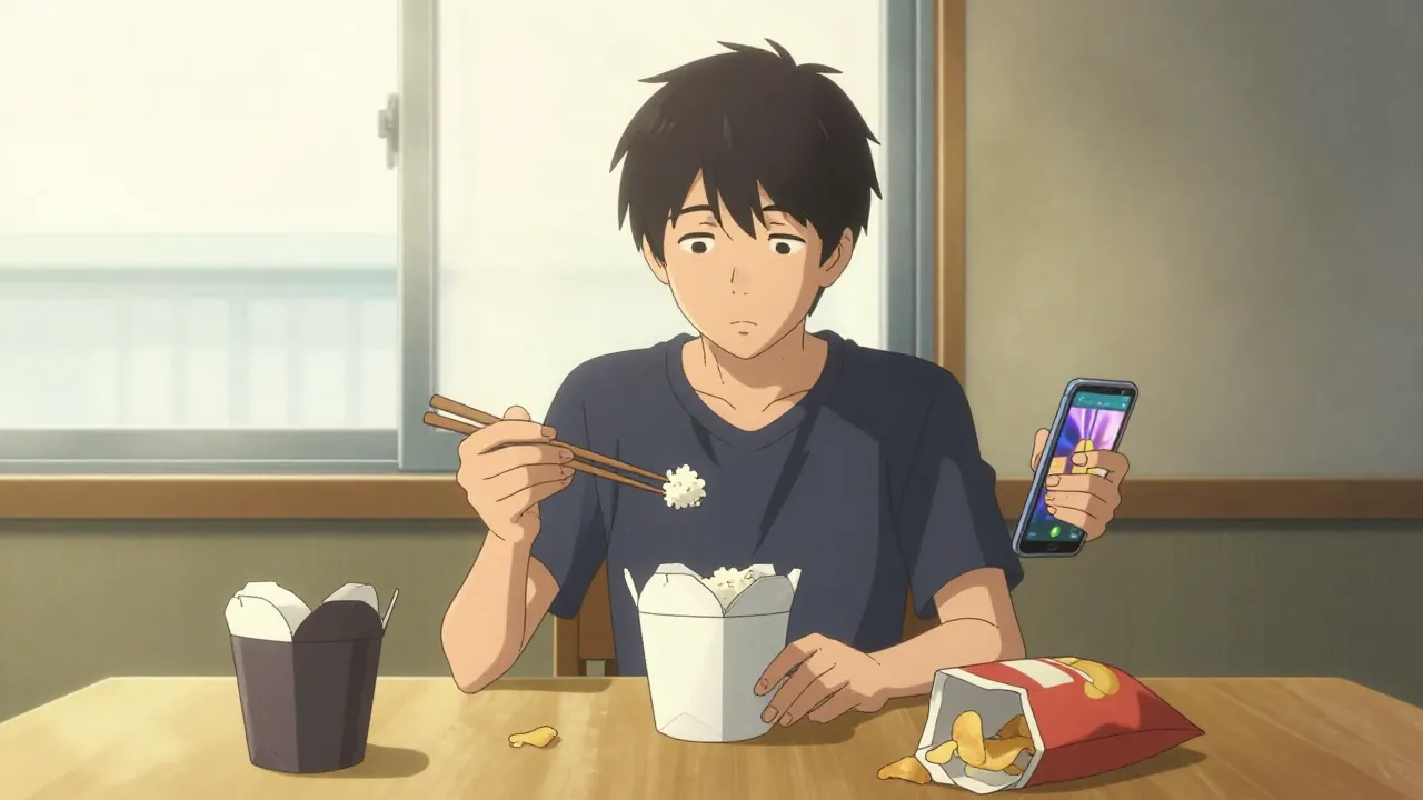 你有没有这种感觉,中午跟同事边吃外卖边聊八卦,吃完了想不起哪个菜什么味儿?或者每次吃完总觉得吃撑了,后悔刚才怎么又没管住嘴?甚至晚上刷剧的时候,手里不知不觉就干掉了一整袋薯片,事后才反应过来——我刚才到底吃了啥?